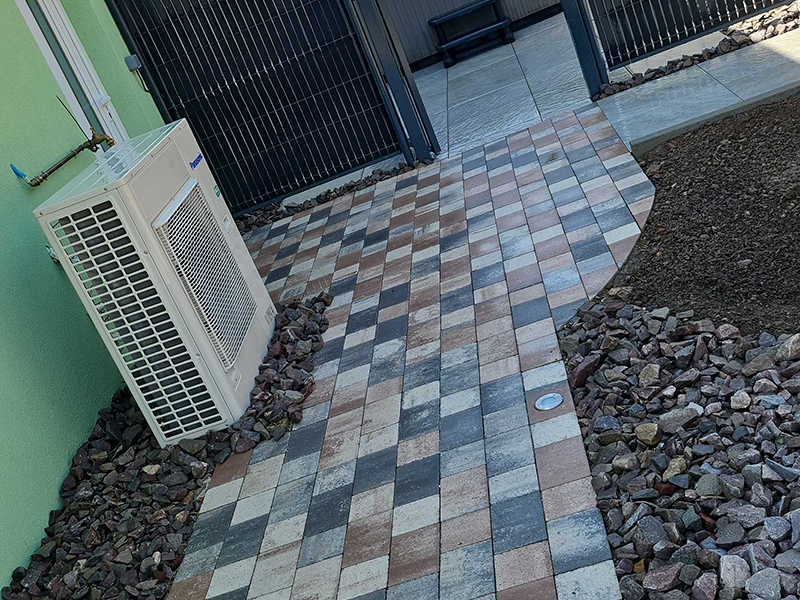 - Aménagements extérieurs variés (pavage, dallage, enrobé, blocs marches, murs en L, enrochement…) ;